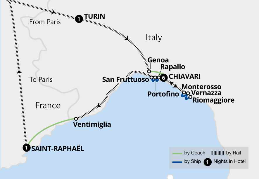 Explore the enchanting destinations of the Italian Riviera while based in Chiavari on the Ligurian Sea. Cruise to the Cinque Terre villages, clinging to towering cliffsides, and Portofino, a popular village set within a natural harbor. Uncover San Fruttuoso abbey, located on a beach in a peaceful cove, and delve into the history of Genoa,...