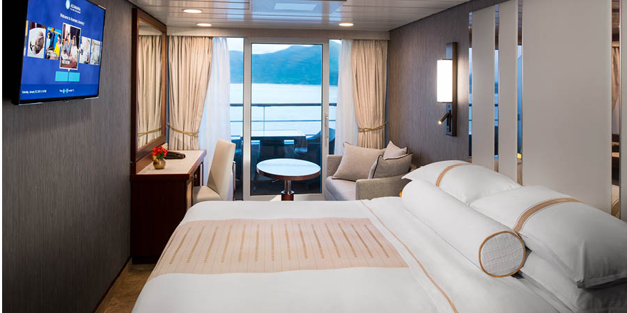 Experience a little extra indulgence with your own private Veranda, where you can soak up the sea air and panoramic views. Inside, relax with all the thoughtful touches included in every stateroom, ensuring comfort and relaxation throughout.